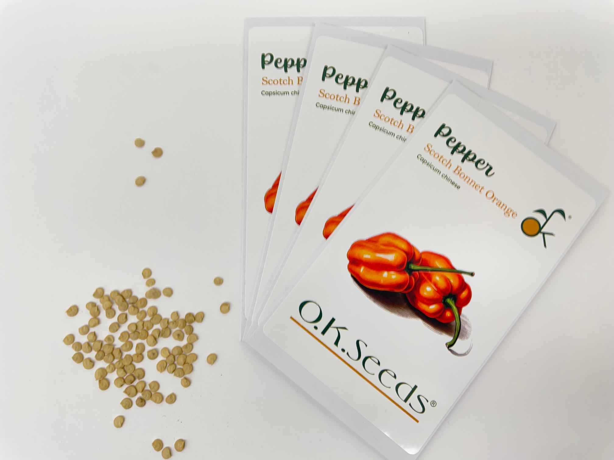 The Orange Scotch Bonnet (Capsicum chinense) is a vibrant, fiery pepper with a sweet, citrusy flavor and is a staple in Caribbean cuisine, especially for traditional jerk seasoning and sauces. Known for its distinctive bonnet shape, this heirloom pepper has heat levels between 100,000 and 400,000 Scoville Units, similar to habaneros but with a unique sweetness.